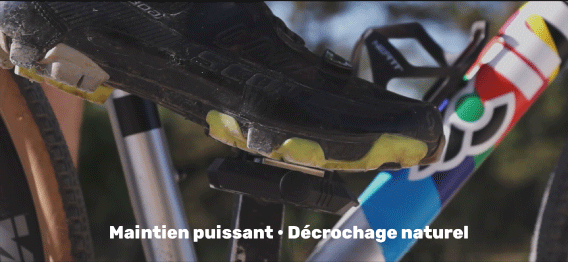 - un décrochage naturel, fluide, sans effort et sans rotation, un point clé pour celles et ceux qui hésitent à passer aux pédales automatiques.